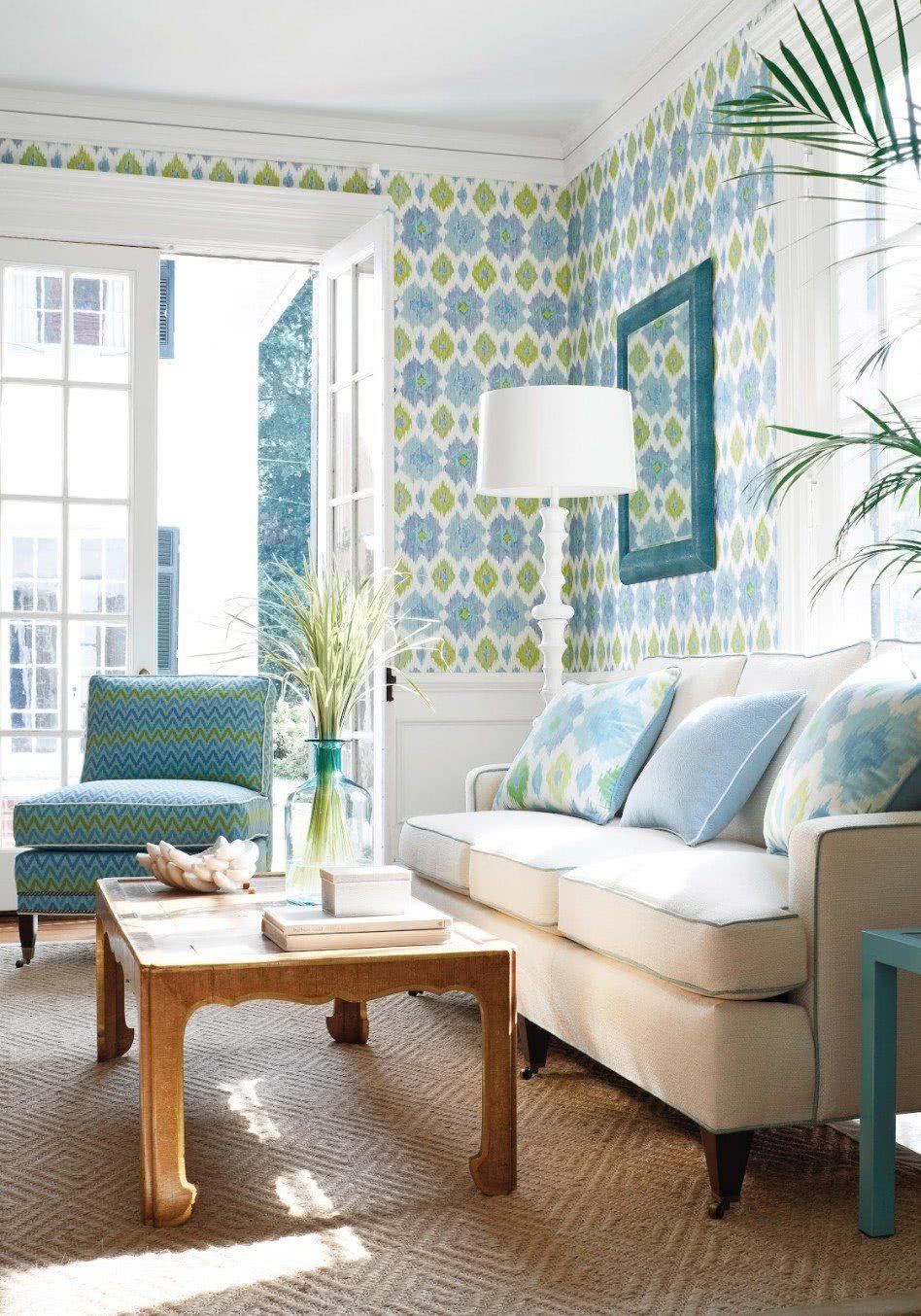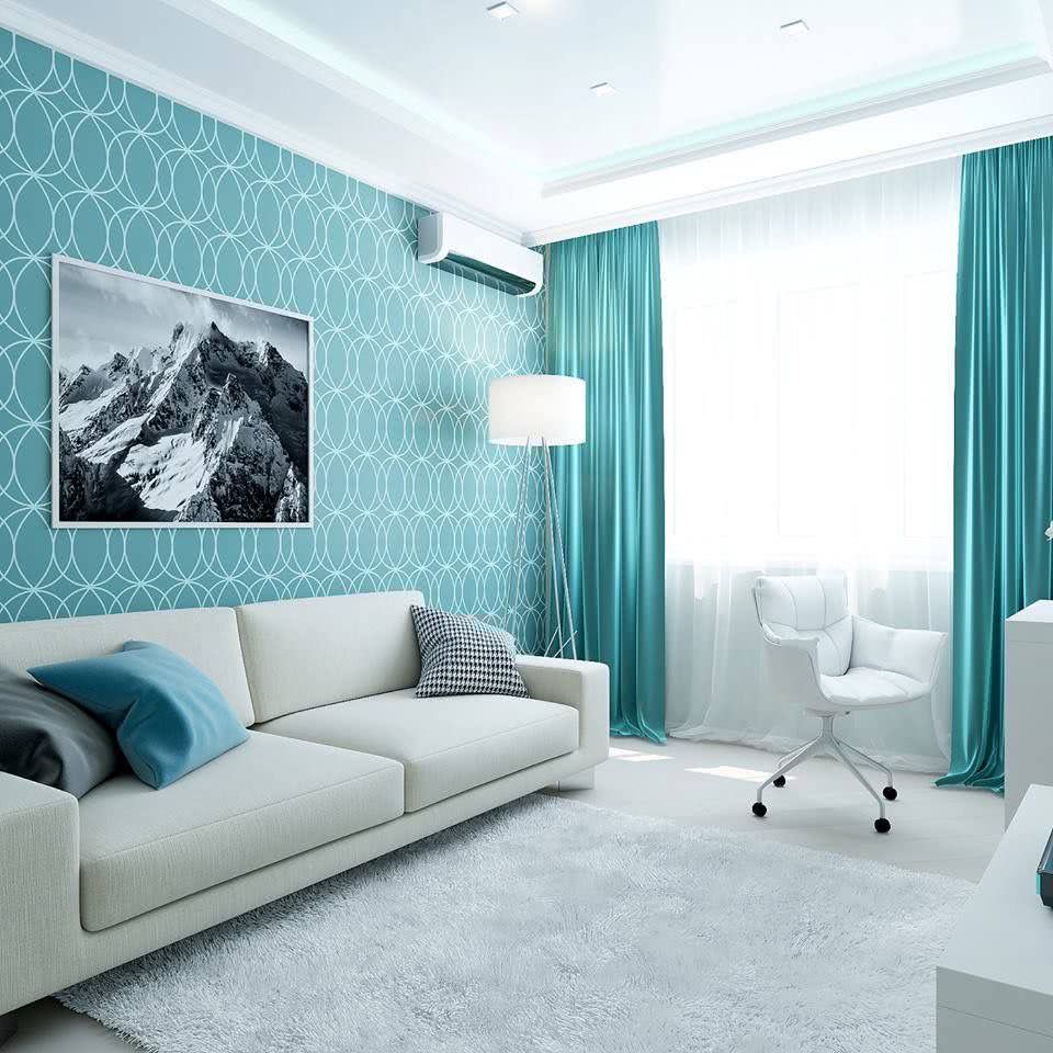 Зелено-голубой интерьер подходит для оформления детской, спальни, гостиной. Это цвет травы и неба, поэтому такое естественное сочетание является широко распространенным. Насыщенный голубой дополняет глубокий зеленый, а нейтральный тон дополняет нежный фисташковый цвет.