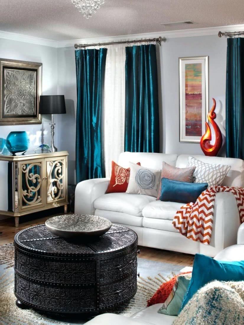 Еще одно необычное решение — голубой в гостиной в сочетании с фиолетовым или зеленым. Сначала может показаться, что цвета не совпадают. Однако, ища вдохновения, вы обнаружите, что это неправда. Поверьте, это отличное и оригинальное сочетание. Фиолетовый зал можно обустроить голубыми аксессуарами в виде декоративных бутылочек, подушек и рисунка. Голубой в сочетании с зеленью также отлично смотрится.