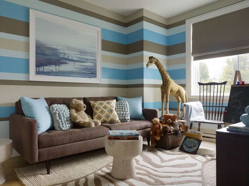 Применяются спокойные, мягкие тона. Они приятны для глаз, ассоциируются с небом, морем, придают комнате уют, спокойствие.