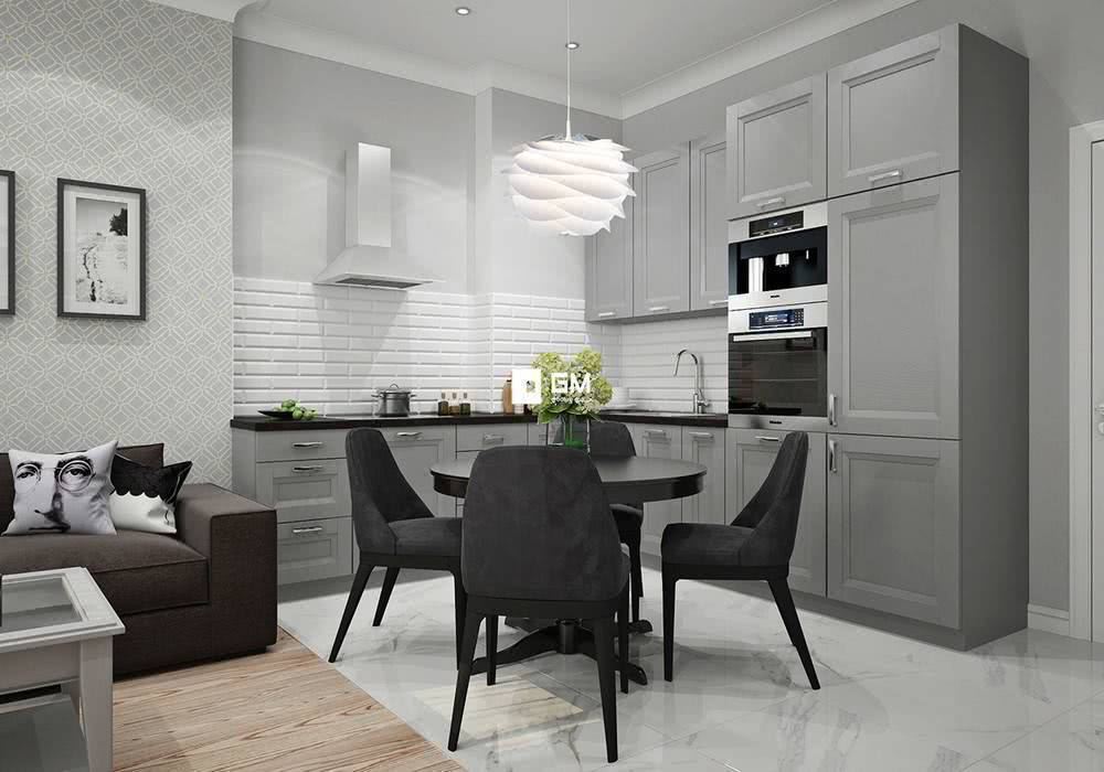 Серый интерьер кухни поможет целиком сконцентрироваться на приготовлении пищи – классический серый фасад, столешница или отделка сконцентрируют ваше внимание. А помещение в современной стилистике будет напоминать кухни ресторанов, где все четко, лаконично и исполнено металле.