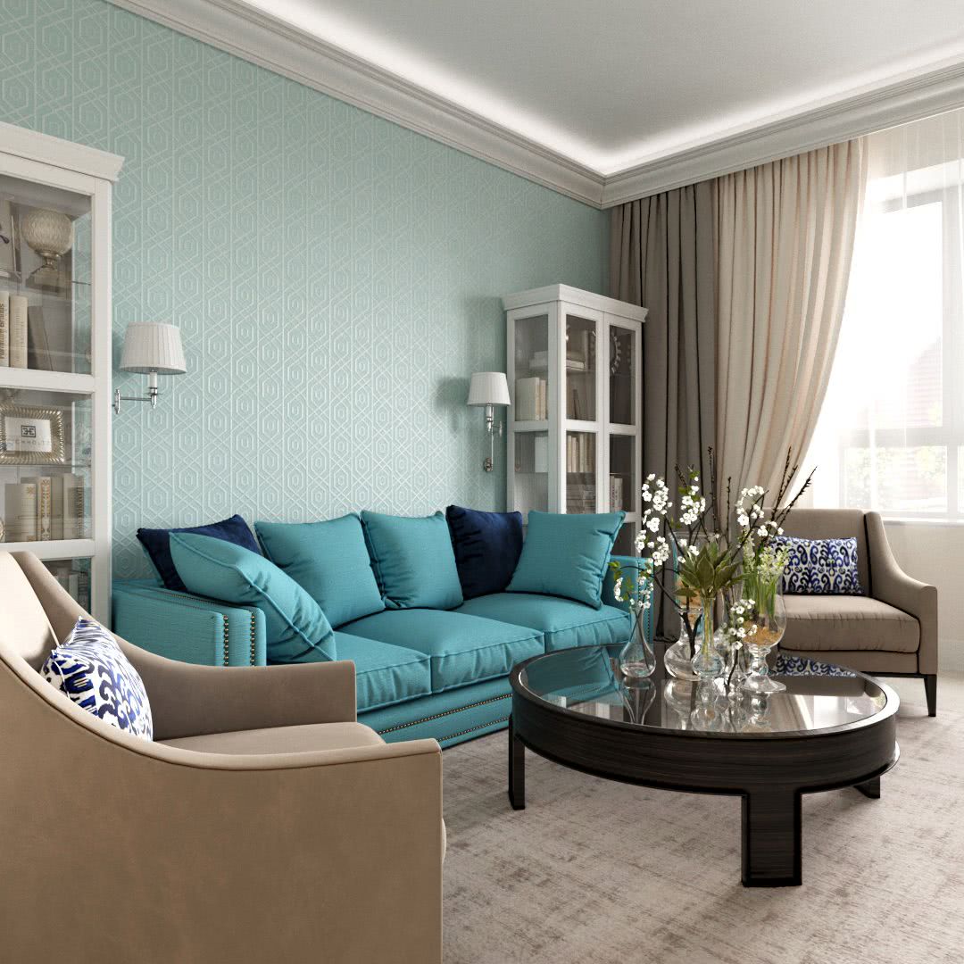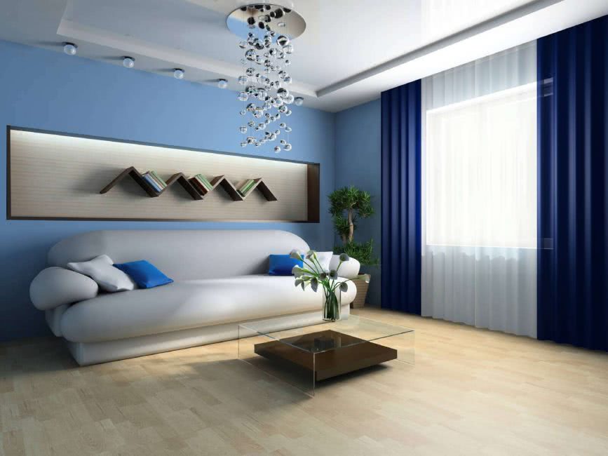 Гостиная в голубом цвете: удачные сочетания с другими расцветками