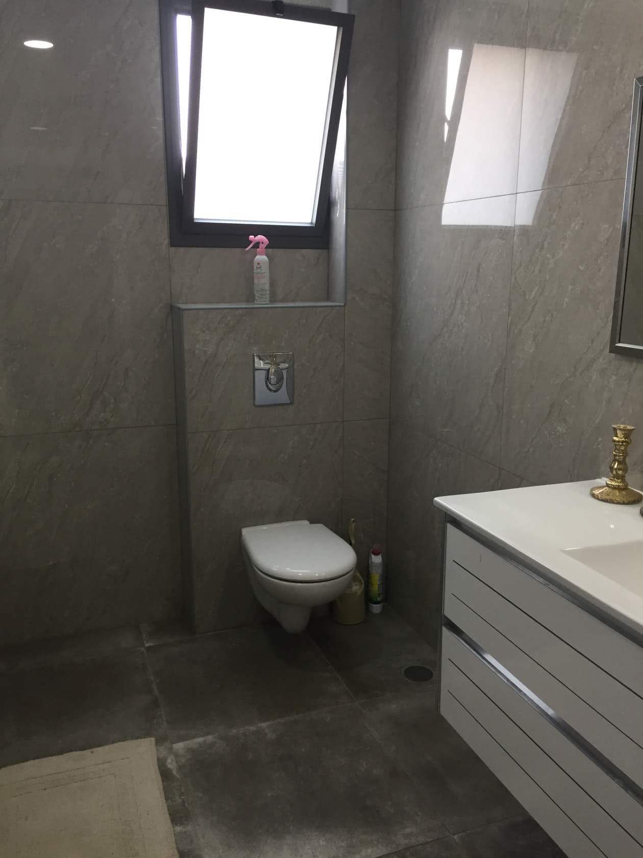 - Светлые оттенки данного цвета визуально расширяют пространство, а тёмные — сужают. По этой причине серый подходит как для просторных, так и для маленьких по площади санузлов.