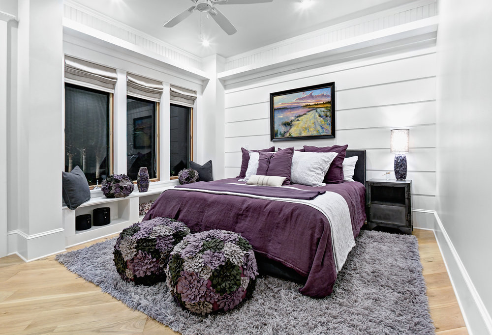 Немного виноградного оттенка в спокойной нейтральной спальне