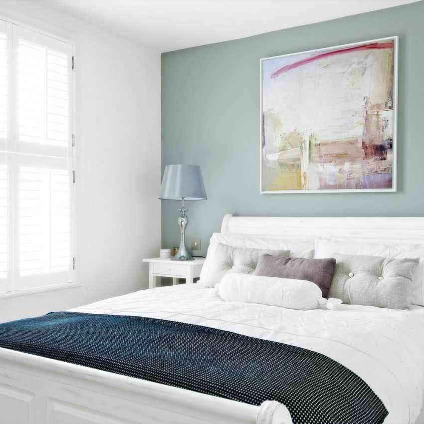 Акцент. Если вы хотите добавить спальне свежести, выберите центральную стену и выкрасите ее в яркий цвет. Этот прием часто используется дизайнерами.