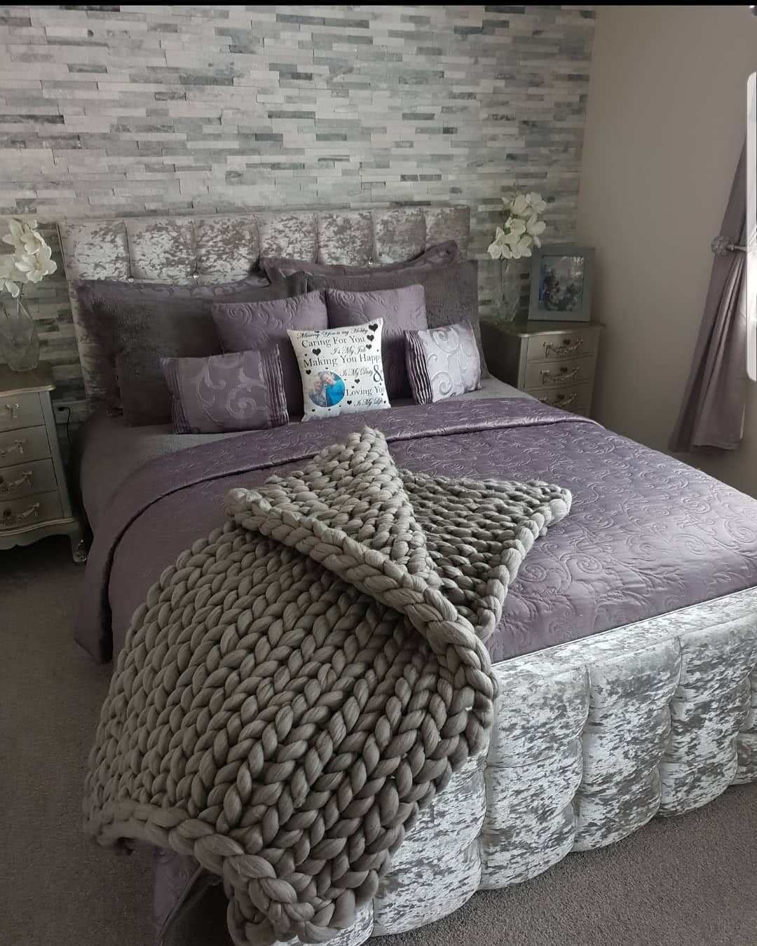 Серебристая стена в спальной комнате.