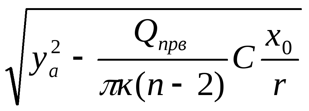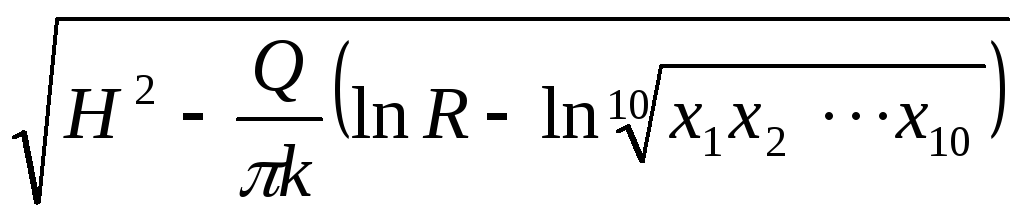 Так, для колодца 6, симметрично расположенного с колодцами 1, 4, 9, составляют схему и вычисляют расстояния от колодца 6 до других колодцев: х1,х2, …, хn. При этом х6 = r. Пользуясь формулой (3.29), определяем у6: