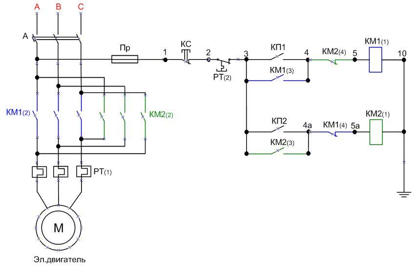 Существуют также катушки на 12, 24, 36, 42, вольт, поэтому, прежде чем подать напряжение на катушку, вы должны точно знать ее номинальное рабочее напряжение. Она подходит к магнитному пускателю КМ1, а также при помощи перемычки с тем же номером контакта на КМ2. Обсудить Редактировать статью Если правильно подключить по схеме реверсивный пускатель, то получится запустить любой электродвигатель и заставить вращаться его не только вперед, но и назад.