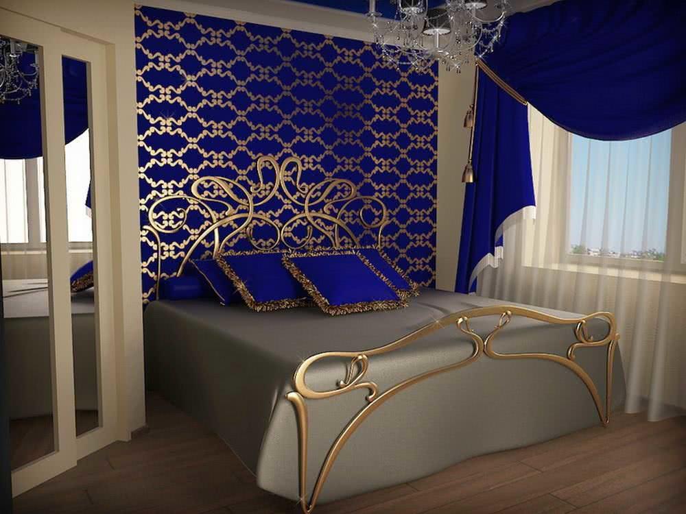 Сочетание синего и золотистого – это роскошь, глубина, большие претензии интерьера на шик. Далеко не каждое жилище «потянет» такие цвета. Но попробовать можно, например, в спальне.