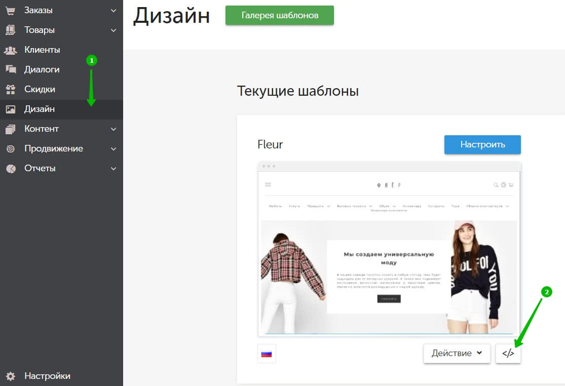 Для перехода в редактор кода откройте раздел Дизайн и нажмите «Редактор HTML/CSS/JS»:
