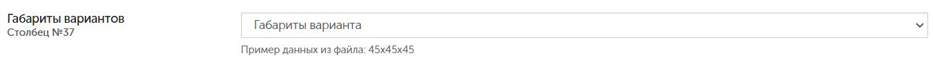 При сопоставлении столбца из файла и атрибута товара нужно выбирать «Габариты вариантов»: