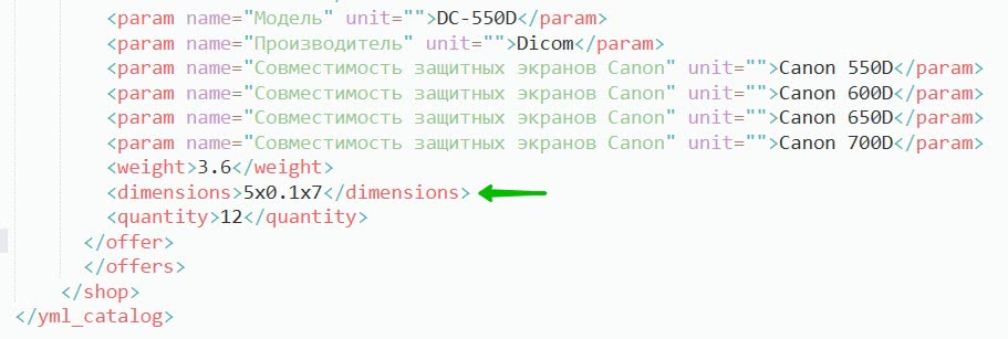 При необходимости можно вывести с помощью данных переменных габариты на сайте для покупателей. Для этого необходимо внести правку в код шаблона.