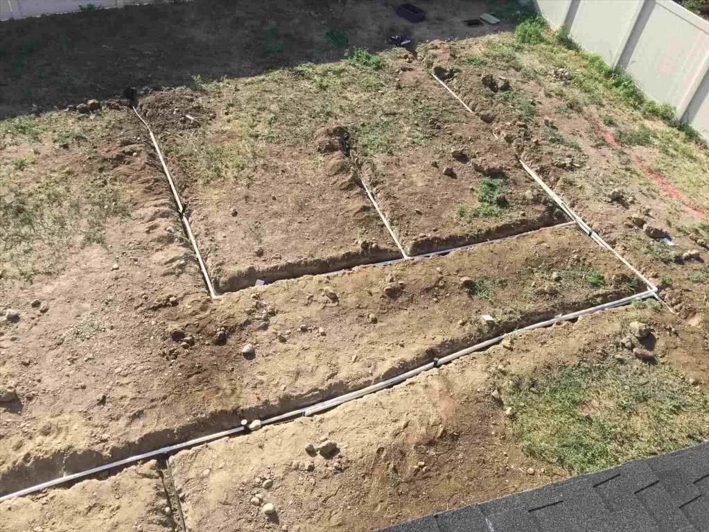 Система полива огорода монтируется в момент глубокой перекопки участка или во время посадки многолетних культур. Траншея должна быть на 0,3 м глубже, на 0,25 м шире, чем посадочная яма. На дно засыпается слой щебня толщиной 20 см, при этом трубы погружаются в его толщу. Открытые концы трубы закрываются заглушками. Трубопровод подсоединяется к линии водоснабжения, засыпается грунтом.