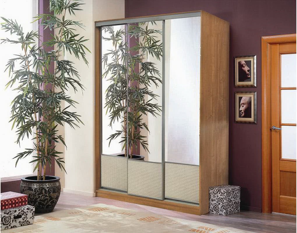 - трехстворчатый — шкафы имеют три подвижные дверки, каждая из которых двигается по направляющим в бок.