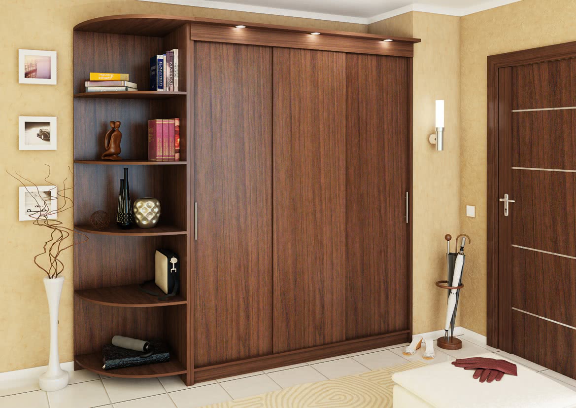 Угловые. Такой шкаф в форме треугольника поможет оптимально организовать пространство. Углы часто в интерьере остаются незадействованными. С помощью мебели можно решить эту задачу. К тому же такой шкаф окажется довольно вместительным. Полки его могут быть как закрытие, так и открытые. Наполнение предмета может быть самое разное. Модели бывают встроенными и корпусными.