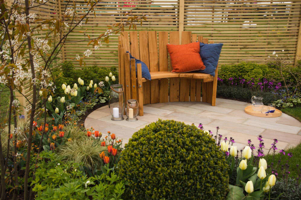 - Релаксационная – зачастую такие скамейки «спрятаны» где-нибудь в самом тихом и укромном уголке дачного участка, подальше от чьих-либо глаз. Это место должно быть самым тихим и уютным для того, чтобы можно было насладиться отдыхом на свежем воздухе. Основное требование к такой скамье – комфорт, кроме того она может быть внушительных размеров для того, чтобы можно было не только присесть, но и прилечь.