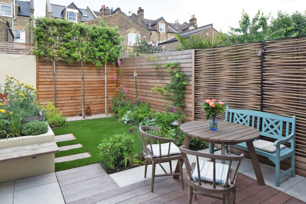 При изобилии зелени, больших клумб можно пойти на небольшую хитрость. Необходимо объединить клумбы доской. Набив на стену несколько длинных досок (при расположении скамьи возле стены), вы сделаете спинку.