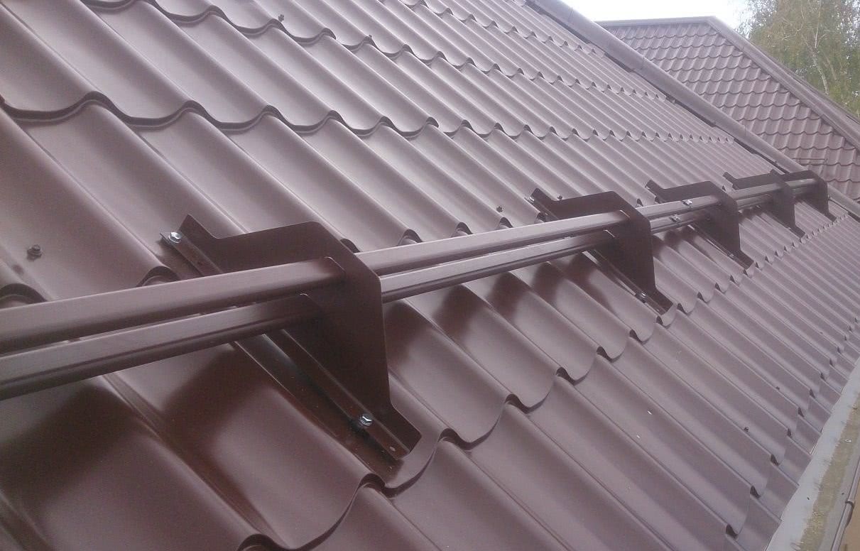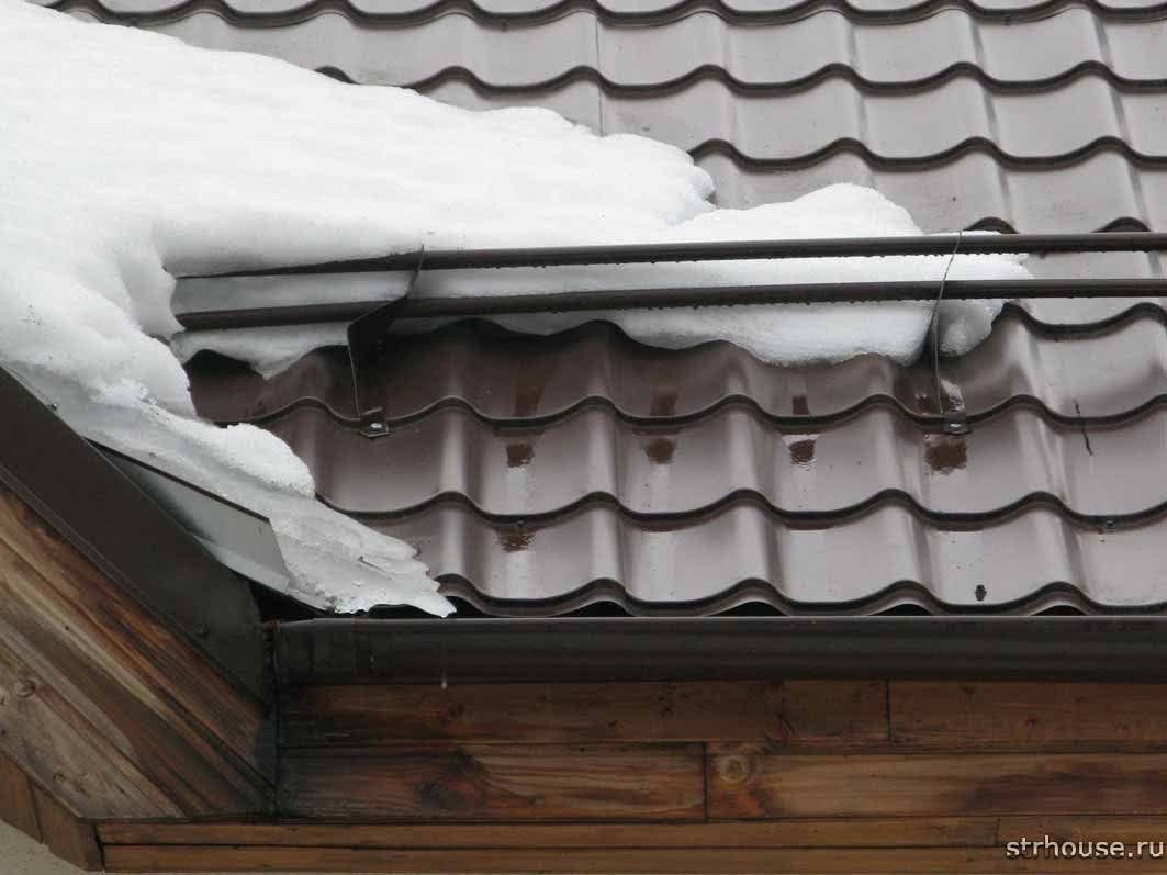Этот материал для крыши, как и черепица, имеет чувствительность к перепаду температур. Днем снег подтаивает, а вечером замерзает образуя льдинки. Они во время движения царапают поверхность и приводят к образованию ржавчины. На такую крышу снегозадержатели делают из профлиста, решетки или труб. Процесс установки мало чем отличается от написанной выше инструкции для металлочерепицы. К обязательным правилам можно отнести следующую информацию: