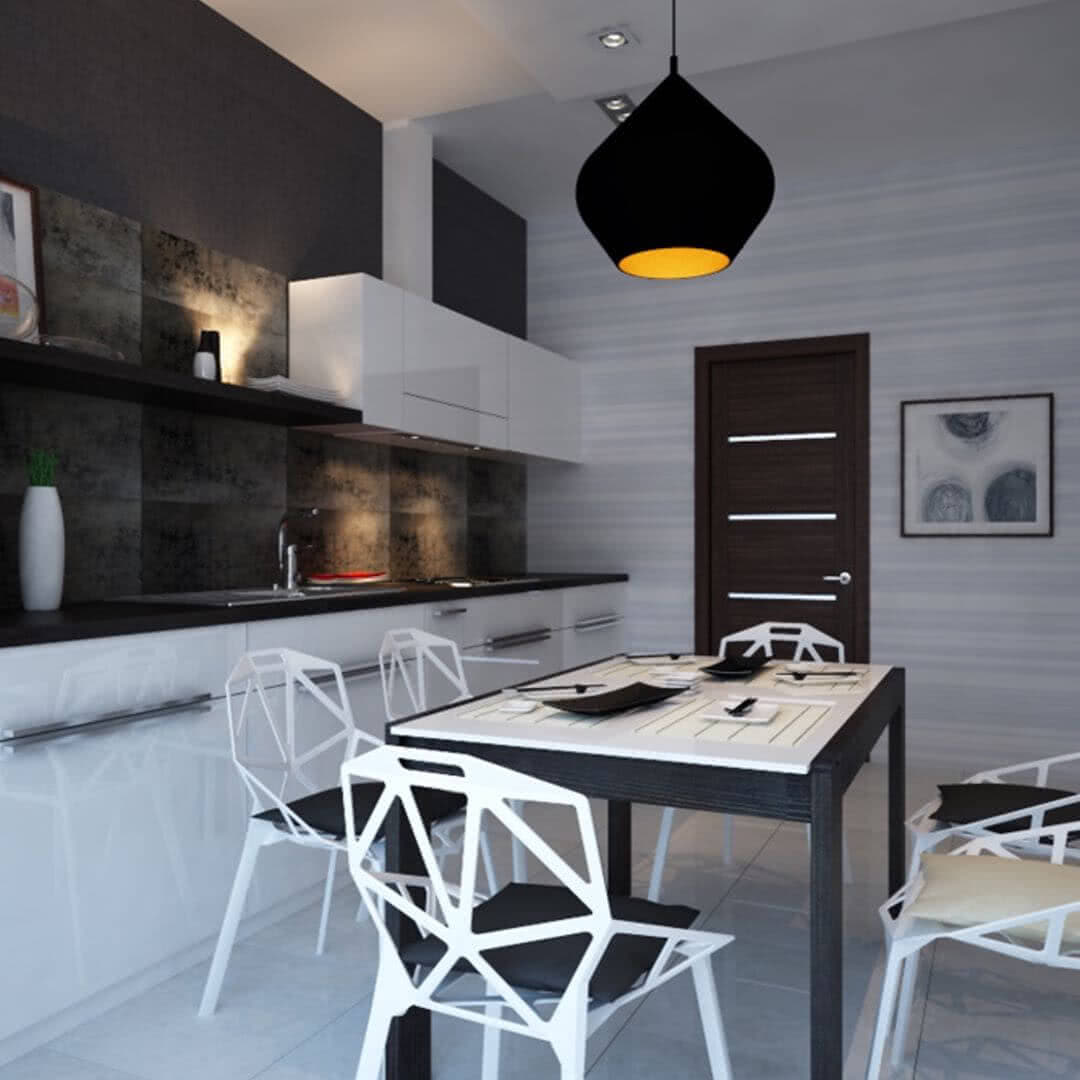 Если добавить больше белого, можно визуально расширить помещение. Не переусердствуйте с черным.