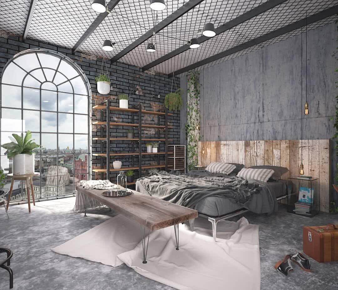 Индустриальный стиль городских джунглей почти полностью состоит из серых бетонных блоков, металлических конструкций и хромированных систем вентиляции. Серый интерьер в таком стиле дополнят широкие панорамные окна.