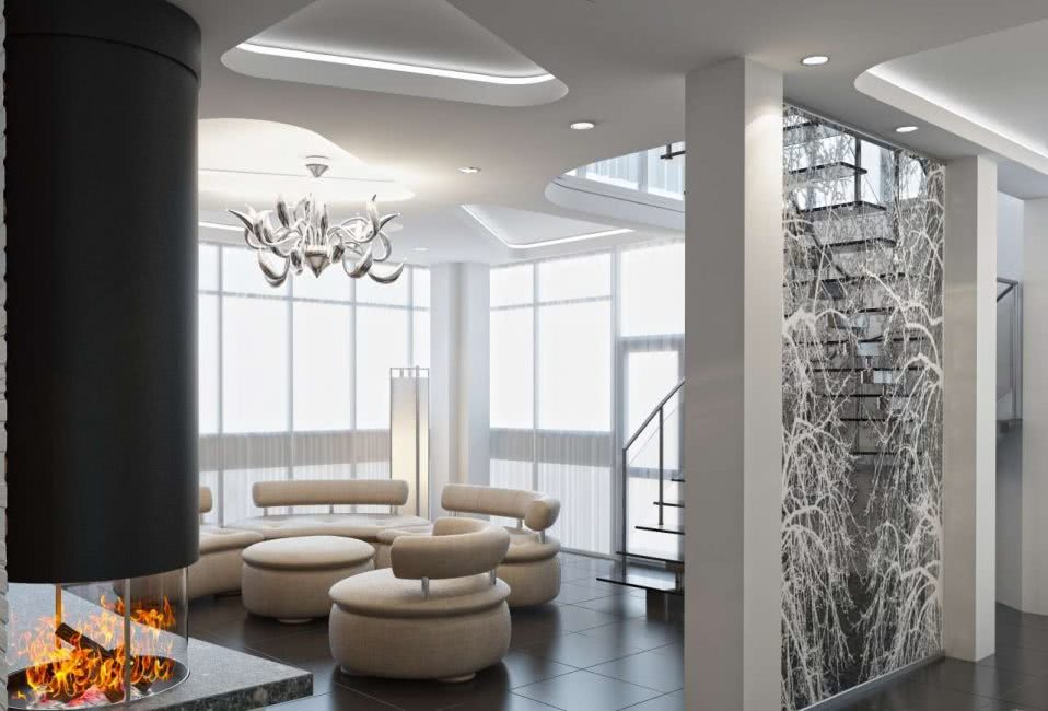 Главный источник освещения должен быть акцентным и привлекать на себя внимание. В зал лучше выбирать дорогостоящую модель? ведь именно это помещение наиболее посещаемое