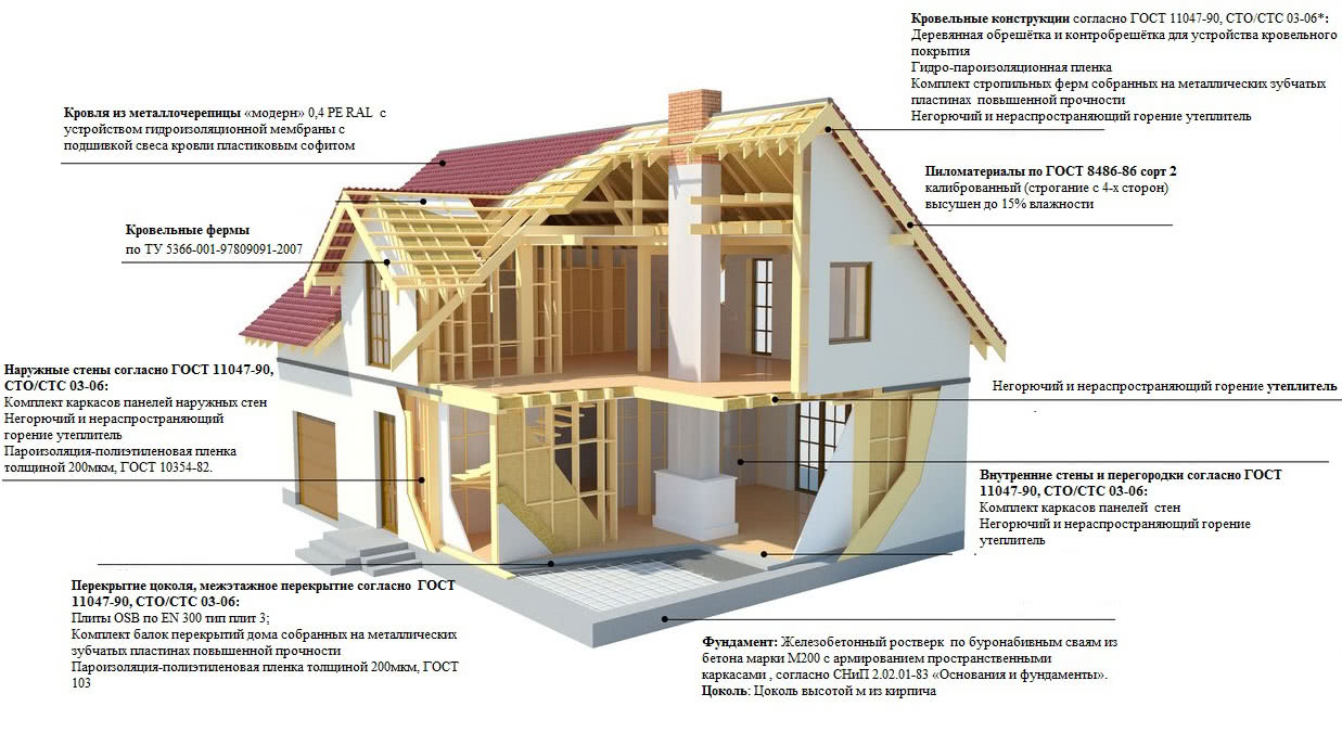 В тексте СНиПа для каркасных домов освещены следующие вопросы: