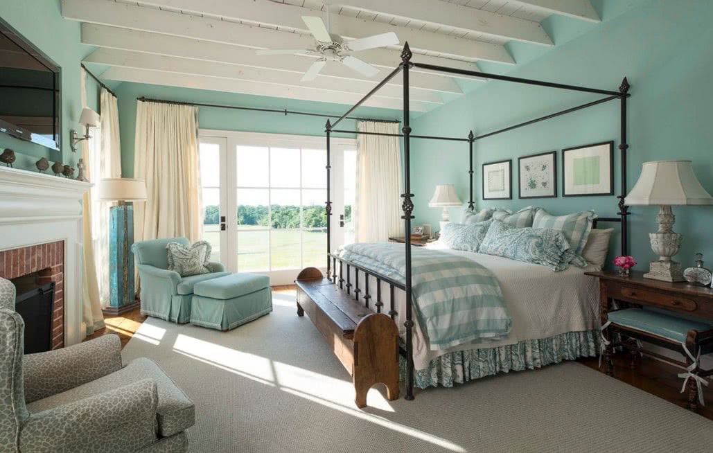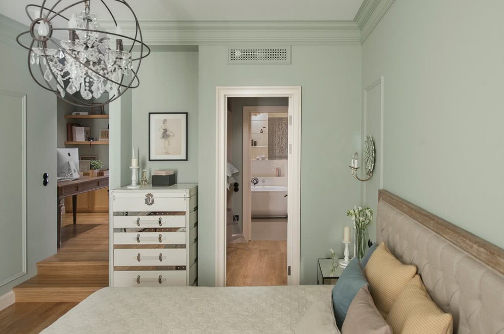 Спальня – это особое место, где вы должны чувствовать себя спокойно и иметь возможность хорошо отдохнуть после рабочих будней. Поэтому оформление этого пространства в мятном цвете – отличное решение. В такой комнате вы точно восстановите силы.