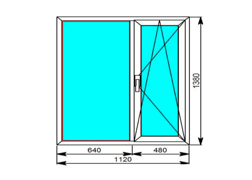Рис. 13. Стандартное двухстворчатое окно с одной форточкой.