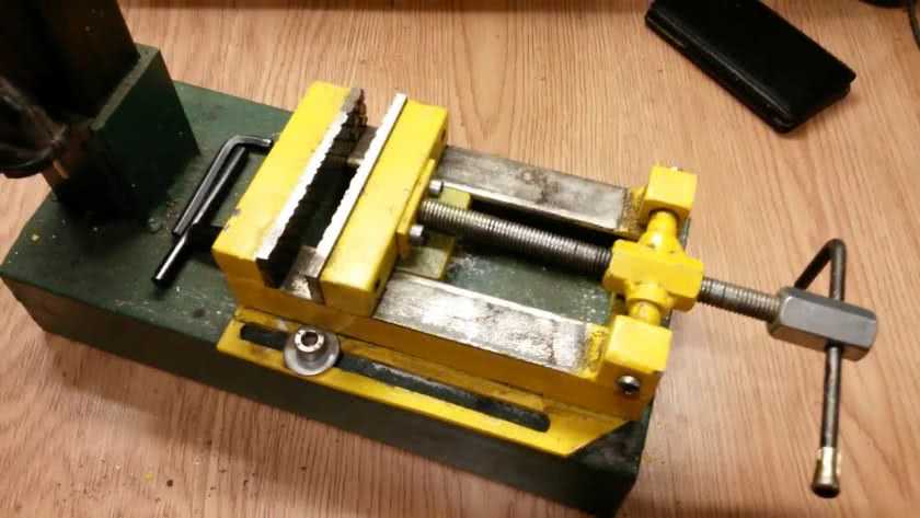 ФОТО: YouTube.comКрепите дрель к плечу стойки скобой и включаете её в сеть, фиксируя кнопку. Потом просто управляете механизмом подъёма, подкладывая нужные деталиФОТО: YouTube.comДрель с лифтовым механизмом легко справляется с деревом, но гораздо медленнее – с металлом. А вот рычаг с пружиной без проблем освоит любые материалы