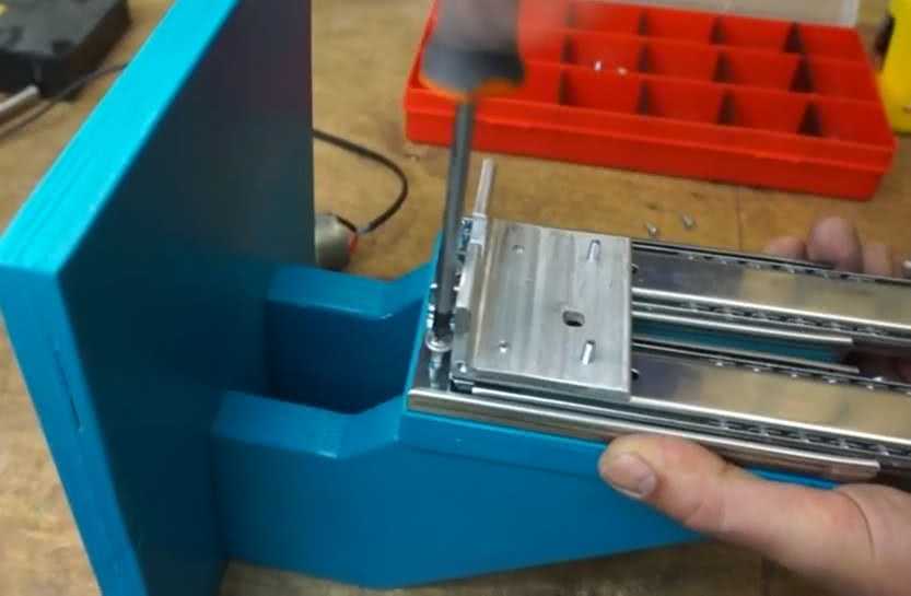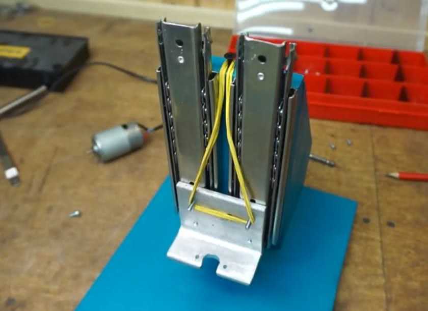 Следующей важной составляющей является механизм перемещения дрели и другой техники вдоль направляющей. Основой данного узла будут ручка и пружины, а сам механизм может быть выполнен в нескольких вариациях