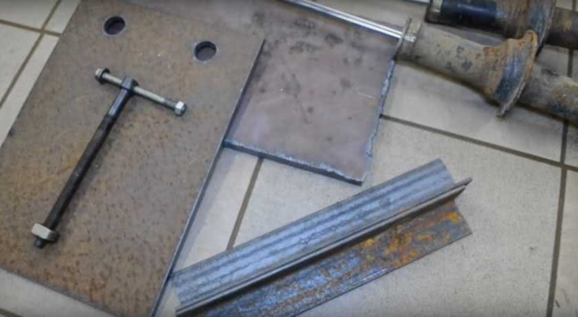 Нужно подготовить все необходимые элементы, для этого из листа толстой стали нарезают небольшие части, а автомобильные стойки разбираются.