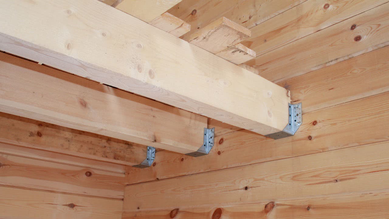 Далее делаем балки, которые необходимо закрепить на столбах металлическими уголками. Полы в частном доме лучше делать с двойным утеплением. Специалисты предлагают сначала укладывать с боков от балок фанерные листы, а потом на них размещать минеральную вату или другой утеплительный материал.