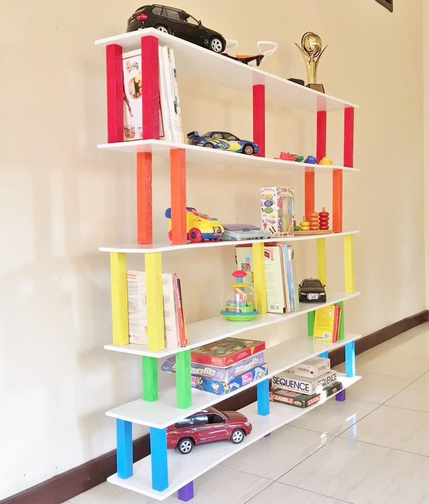 Фантазийные конструкции — стеллажи в виде домиков, горок, машин, прочих предметов. Сюда же относим модули разной высоты. Необычные модели сложно делать своими руками. Детали требуют разных спилов, необходимы специальные станки, инструменты, определенные навыки.