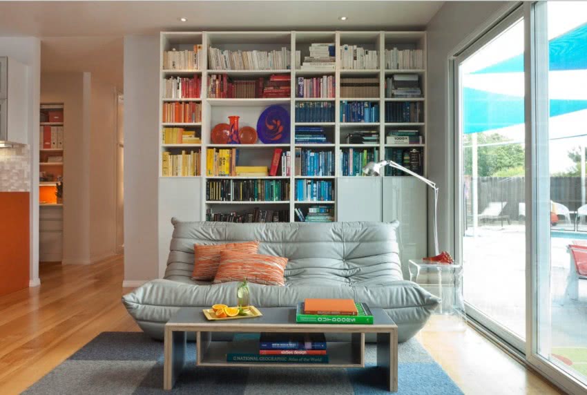 Разместить стеллаж для книг можно во всех жилых комнатах.