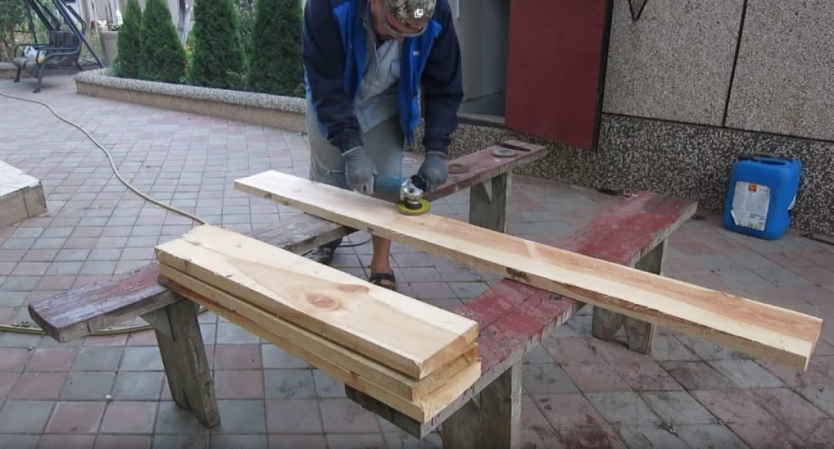Для того, чтобы сделать доски гладкими можно воспользоваться, например, болгаркой с соответствующей насадкой для работы с деревом