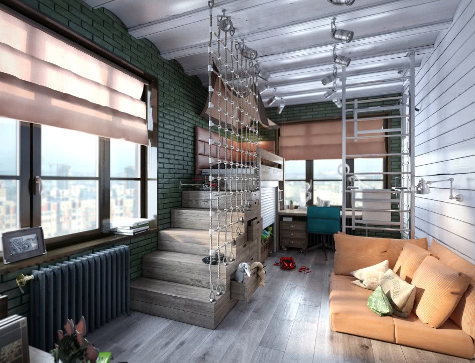 Хорошо подходит лофт для оформления детской комнаты по несколько причинам: