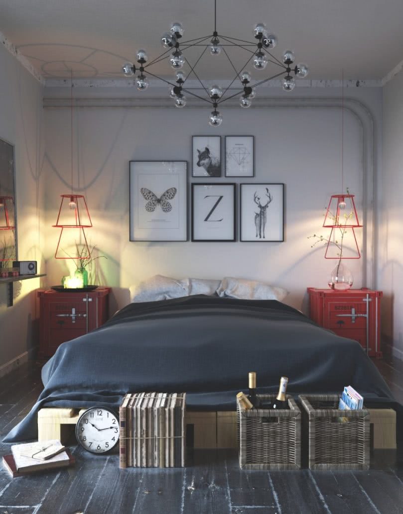 - Подобное направление, несмотря на достаточно брутальный вид, предполагает использование не слишком темных, поглощающих свет, оттенков и создание ярких акцентов красного, желтого, оранжевого и другого насыщенного цвета.