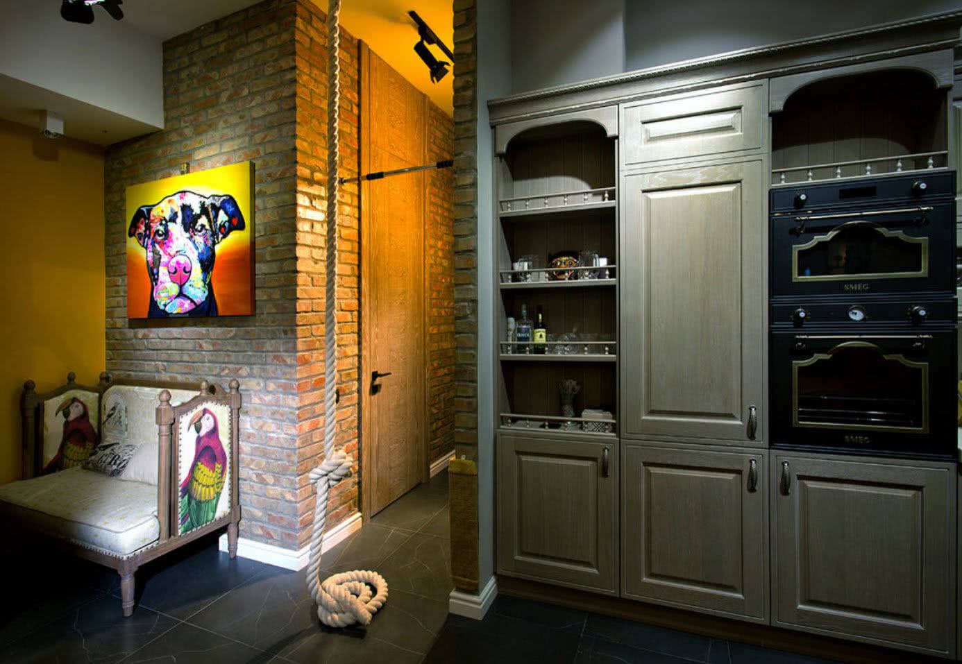 - Никаких обоев. Стены без отделки – «живая» кирпичная кладка (в идеале рыжего цвета), грубая штукатурка или серый бетон. В более мягких версиях лофта стены могут быть аккуратно покрашены краской светлых тонов. Так как это стиль творческих людей с духом бунтарства, на стенах уместно граффити.