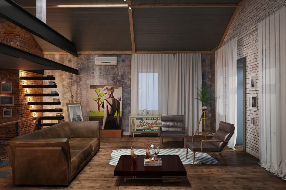 Особенности помещения требуют специфического подхода к выбору предметов интерьера в стиле лофт. Понятие loft в английском языке трактуется как «мансарда, голубятня, чердак».