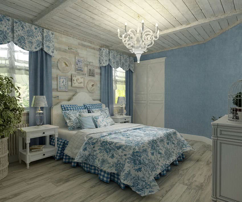 Классический стиль прованс имеет отделку стен и потолка в светлых или белых тонах