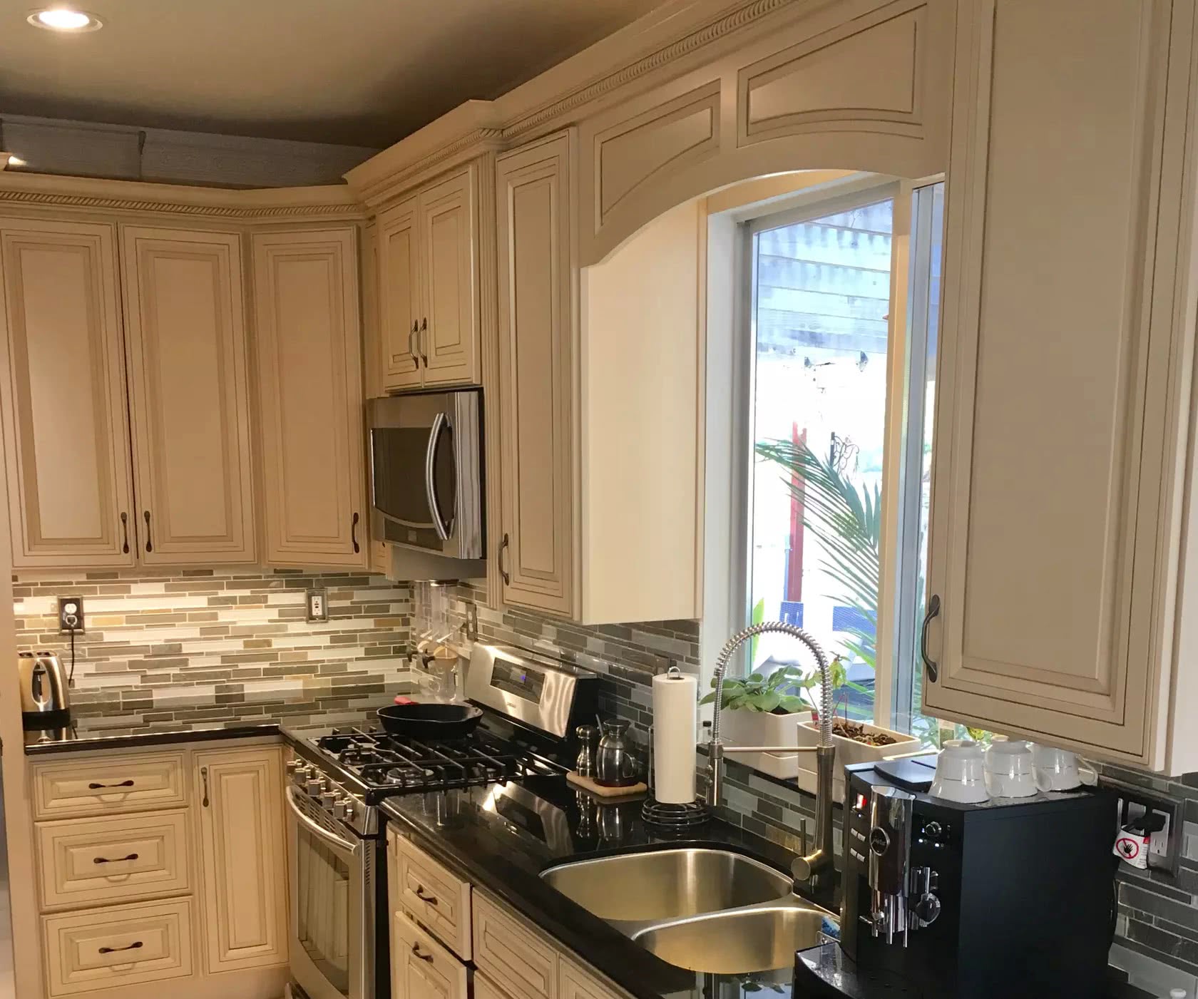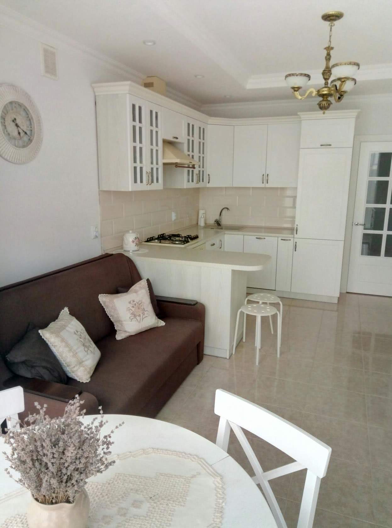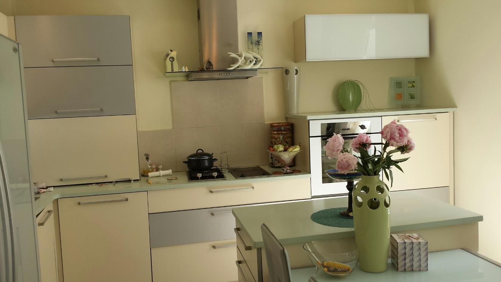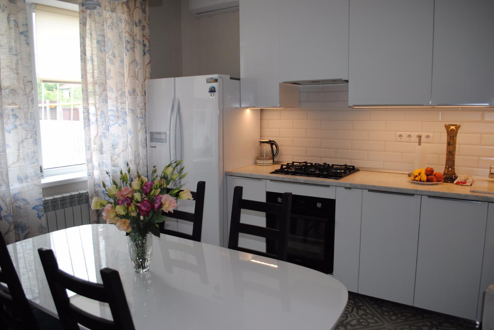 Используйте светлые цвета: белый, бежевый, кремовый, ванильный, цвет слоновой кости. Именно эти оттенки освежат пространство, визуально увеличат его. Светлая кухня отлично впишется в остальной интерьер квартиры, будь то современный минимализм или прованс.