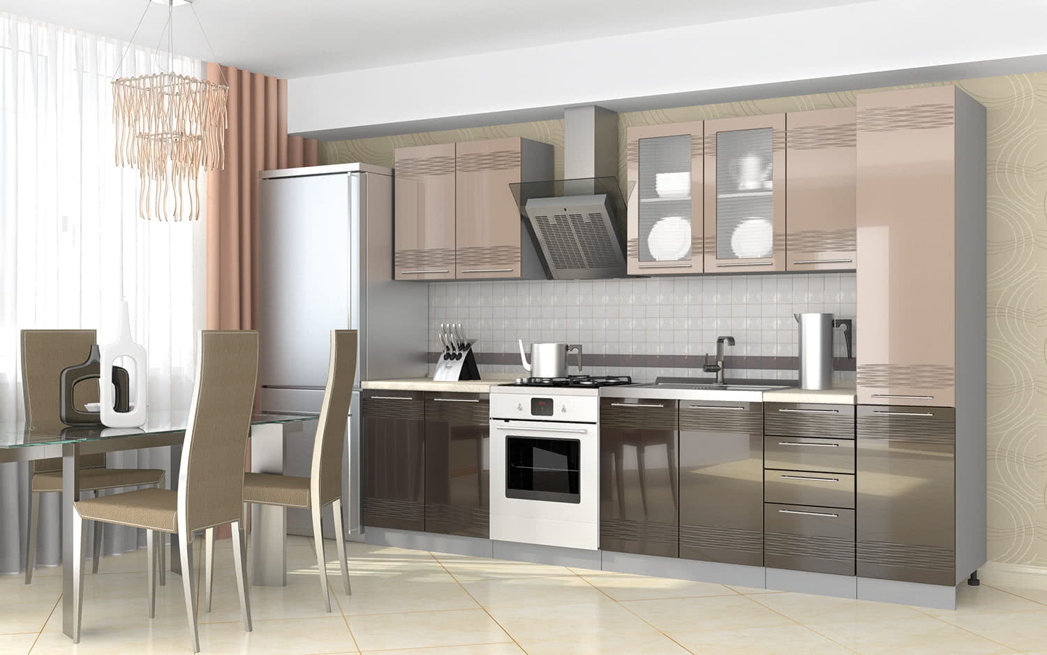 Мебель должна быть глянцевая, так как матовые гарнитуры зрительно уменьшают пространство.