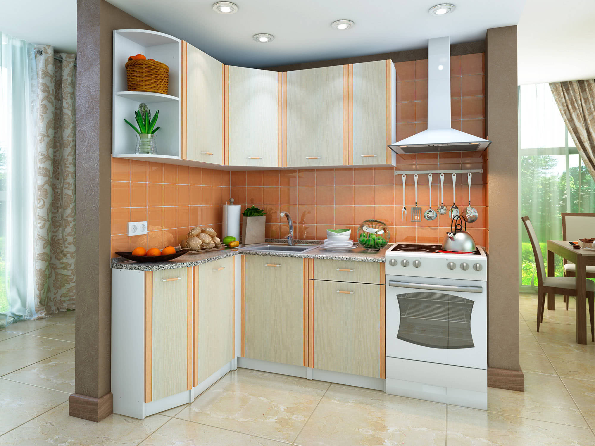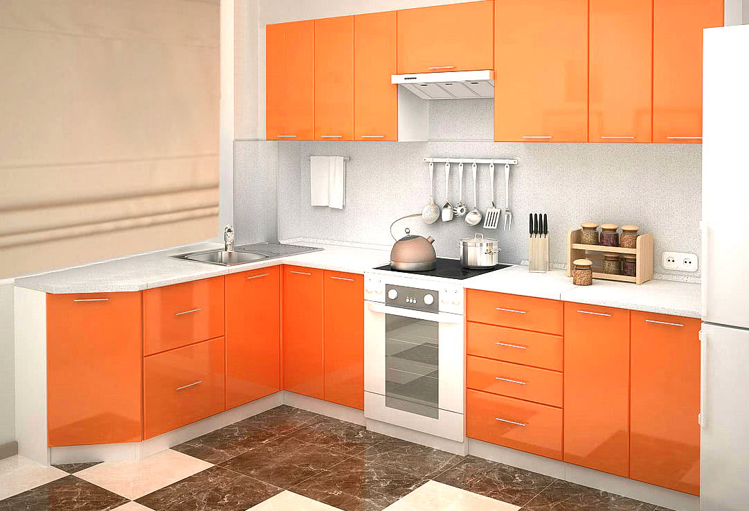 Чтобы исполнить кухню в таком варианте, не нужно обладать огромной площадью! При грамотном подходе, угловая кухня отлично впишется даже в крошечный пятачок «хрущевки».