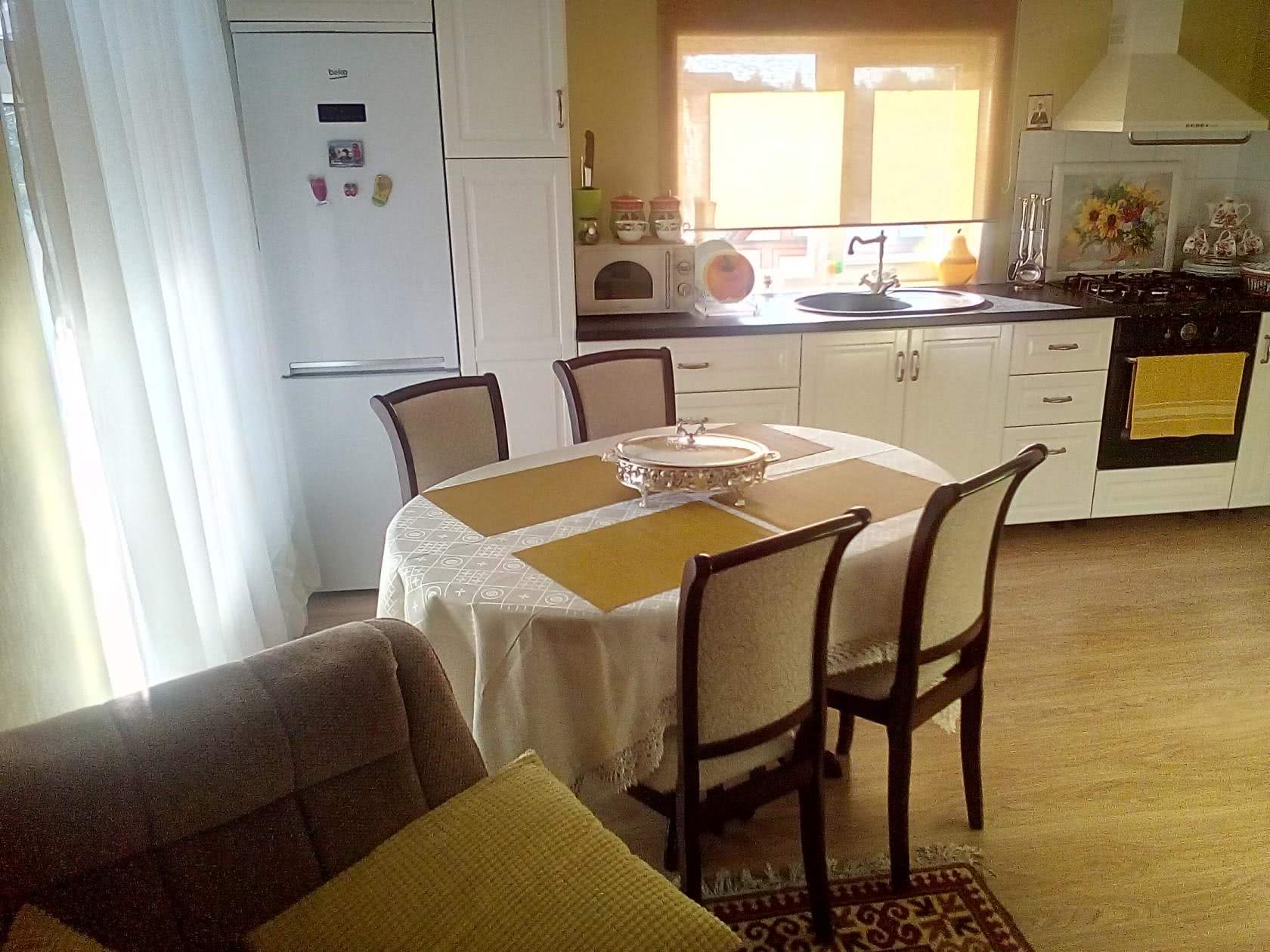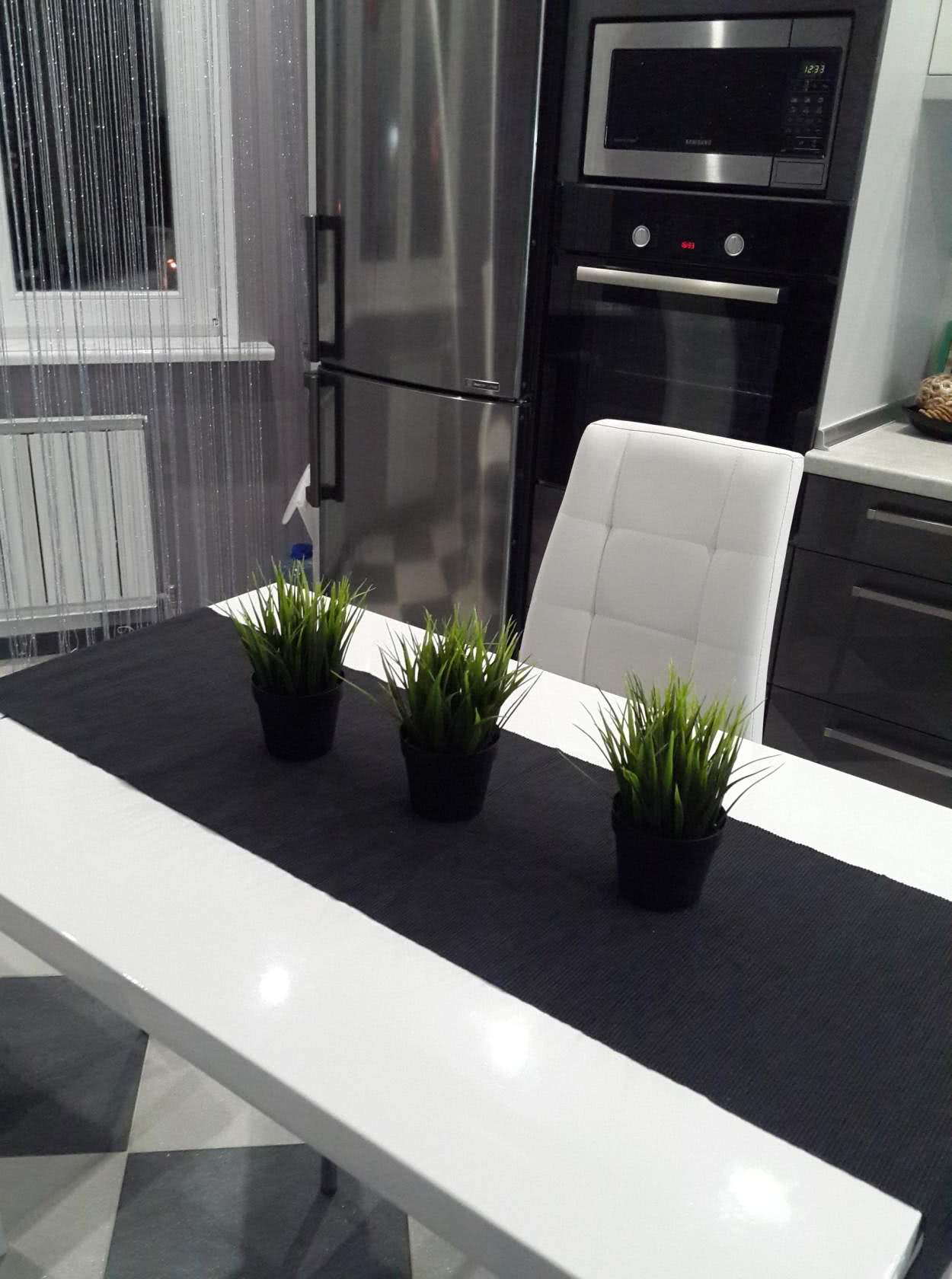 Вместо стола установите барную стойку или столешницу-трансформер. Это сэкономит драгоценные метры, однако барная стойка уместна только в маленьких семьях из двух человек.