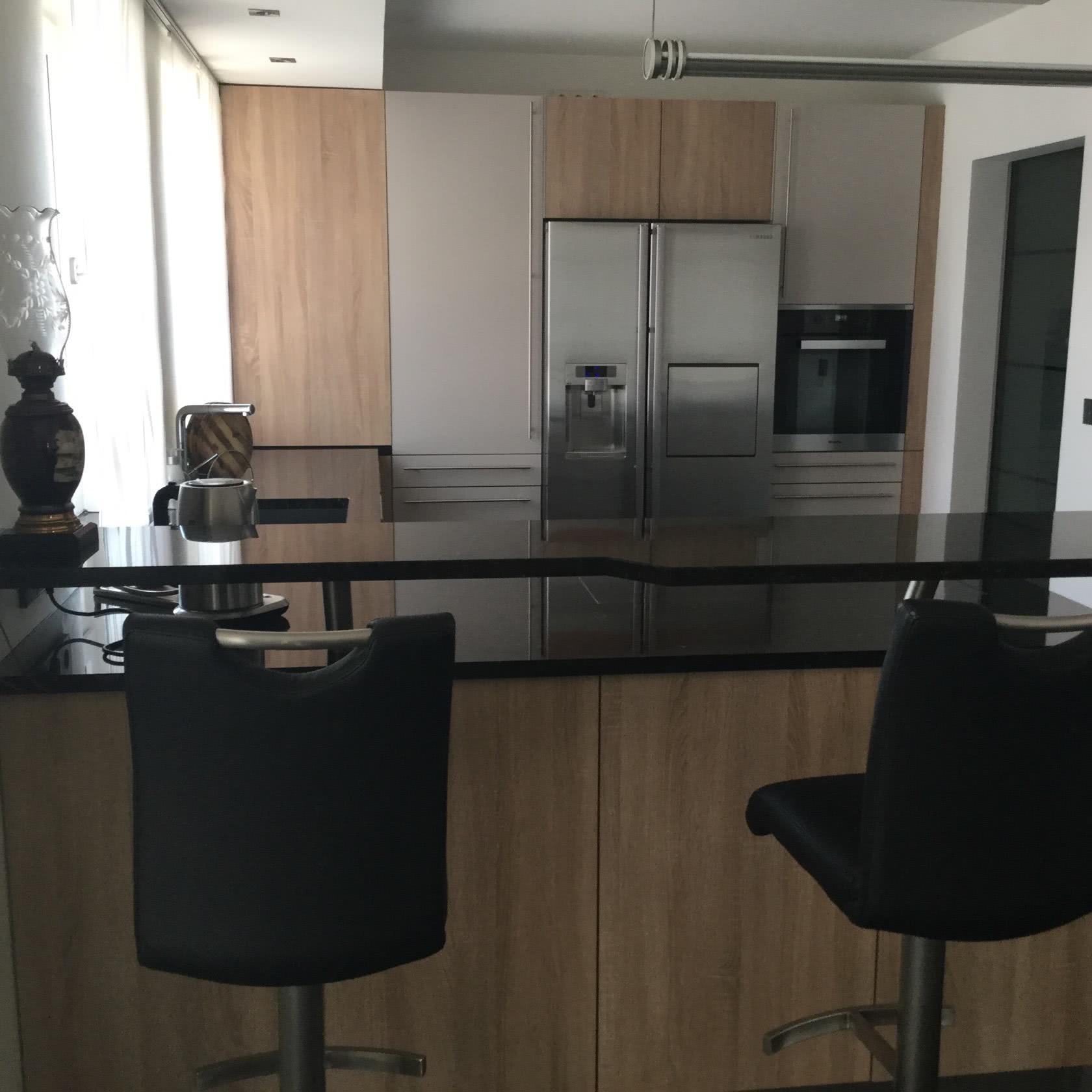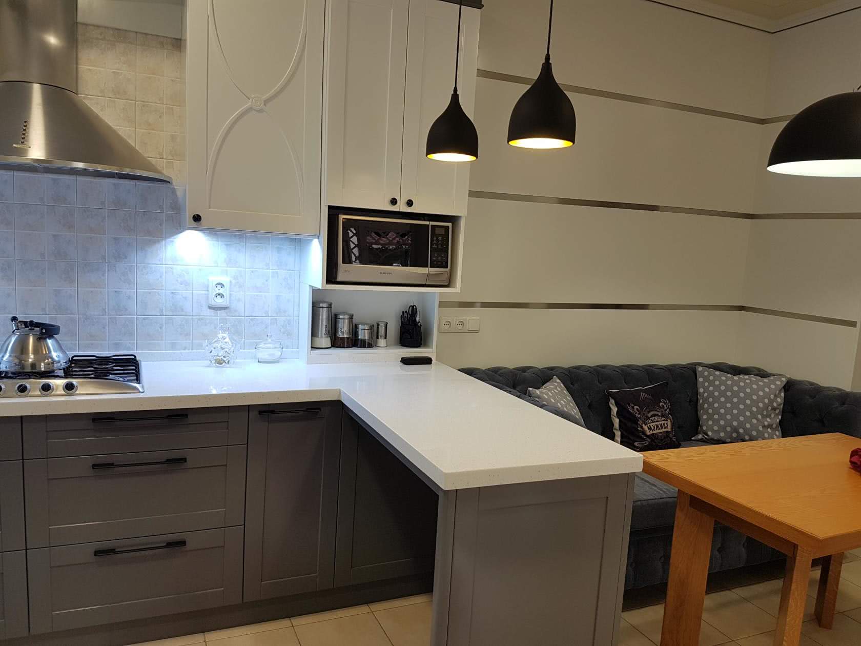Сегодня этот вид наиболее популярен так, как подходит под большинство современных кухонь. Плюс популярности добавляет ей и то, что в кухонных гарнитура подобного вида частенько встраивается барная стойка, что сегодня является весьма востребованным решением.