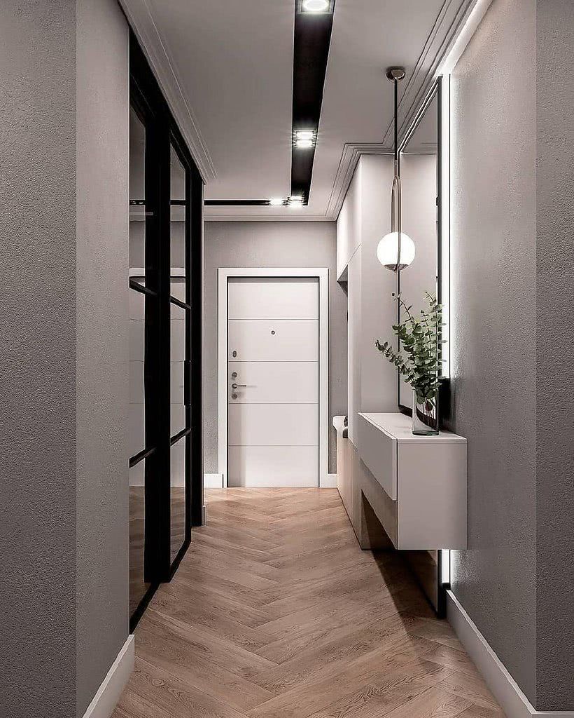 Небольшой современный коридор в правильных пропорциях. Современный дизайн коридора:
