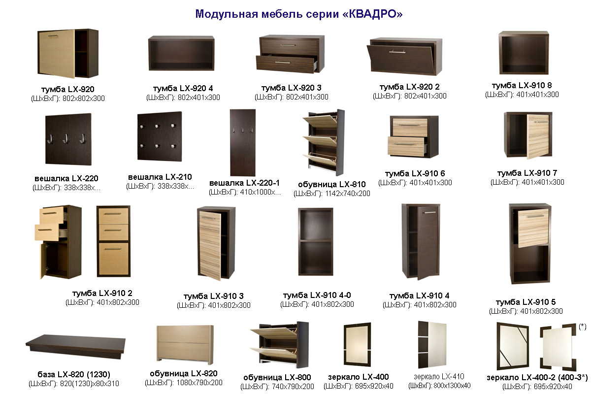 По фото мебели для прихожей видно, что меблировка может состоять из: