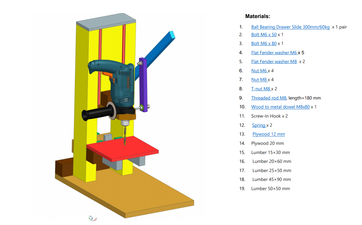 - Подробные схемы и инструкции по созданию держателя дрели размещены в свободном доступе.