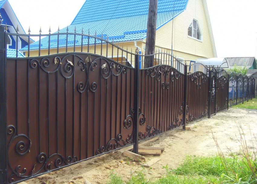 - с коваными решетками, сварными секциями;