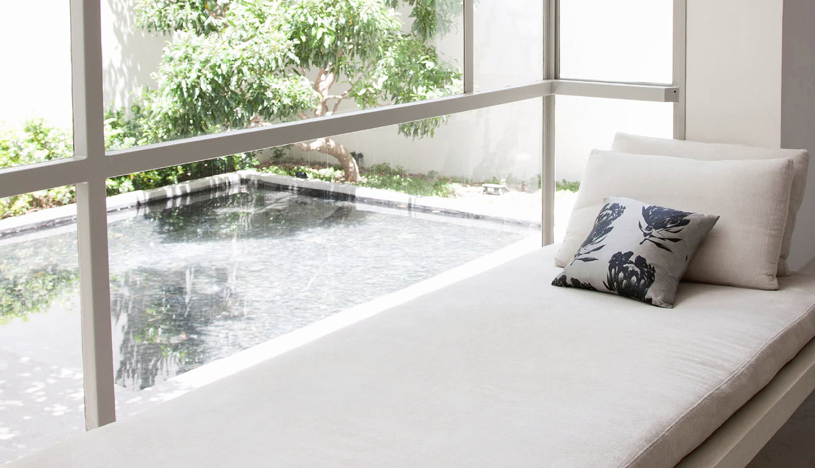 Обустраиваемое пространство должно быть комфортным – здесь будут наслаждаться чтением, созерцанием видов за окном, другими удовольствиями в течение многих часов. Дерево – отличный вариант выполнения основания. Простой способ создать удобный диван – покрыть деревянное основание большим матрасом, толстыми подушками. Первый слой стоит присоединить самоклеющейся липучкой, тогда матрас, не будет скользить, падать на пол. Идеальный вариант – заказать матрас по размеру или вырезать поролон точно по контуру ниши, полностью заполняя подоконник. Стоит поискать материал, напоминающий обивку мебели, шторы, создавая гармоничный дизайн интерьера.