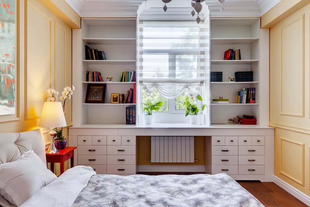 Данная конструкция станет удачным решением, как для комнаты подростка, так и для школьника. Подоконник-письменный стол, оборудованный лампой, продуманной системой хранения, боковыми стеллажами или тумбочками, предоставит ребенку удобную зону для занятий с хорошим освещением.